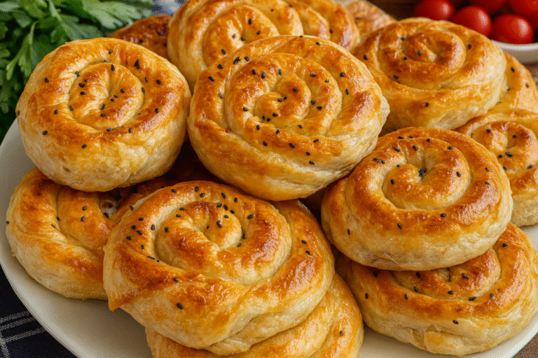 💡 Şefin Tavsiyesi: Gül böreklerinin üzerine fırına girmeden önce yoğurt ve sıvı yağ karışımı sürüp, bolca çörek otu serpin. Pişirme sırasında böreğin içi sulu kalır, dışı ise nar gibi kızarır.