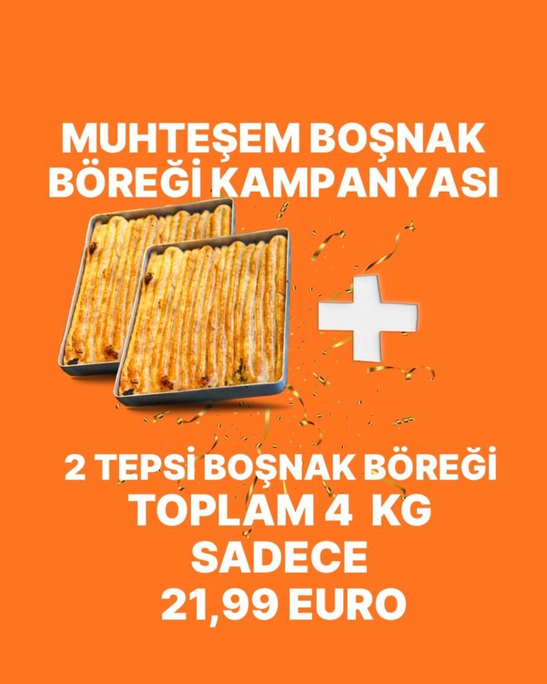 Geleneksel lezzetin zirvesi, 2,5 kg ağırlığında, iki dev tepside! Adı gibi “Efsane” olan bu Su Böreği, evde yapımı en zahmetli hamur işlerinden birini, en taze ve orijinal haliyle sofranıza getiriyor. İncecik açılan yufkaların tek tek haşlanıp, tereyağı ve özel peynir harcı ile katman katman dizilmesiyle oluşan bu lezzet şöleni, kalabalık davetleriniz ve özel günleriniz için pratik ve prestijli bir seçimdir.