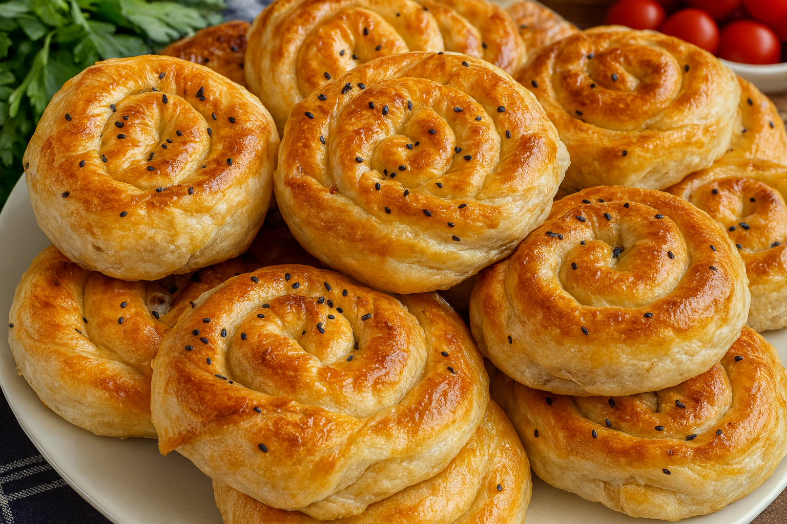 💡 Şefin Tavsiyesi: Gül böreklerinin üzerine fırına girmeden önce yoğurt ve sıvı yağ karışımı sürüp, bolca çörek otu serpin. Pişirme sırasında böreğin içi sulu kalır, dışı ise nar gibi kızarır.